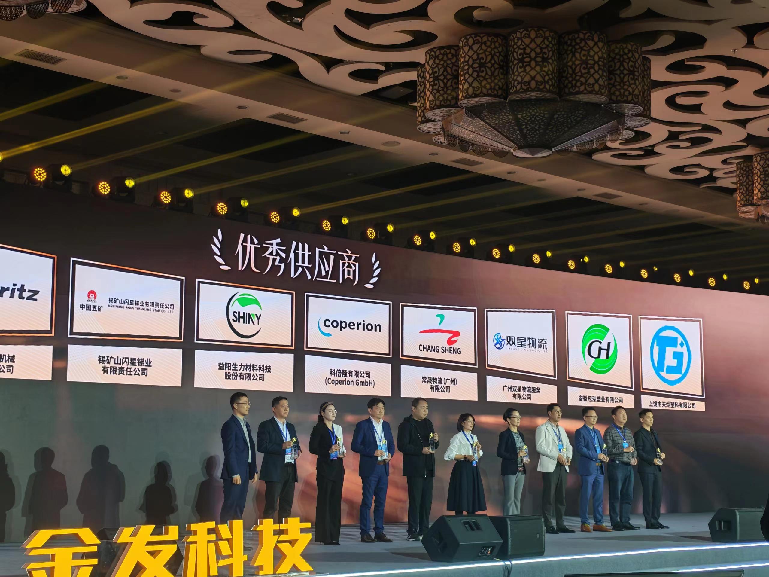安徽冠泓塑业有限公司作为金发科技的重要合作伙伴受邀出席。凭借稳定的产品品质、高效的交付能力、专业的技术服务以及良好的协作态度,安徽冠泓塑业在众多供应商中脱颖而出,被授予金发科技2025年度“优秀供应商”称号。