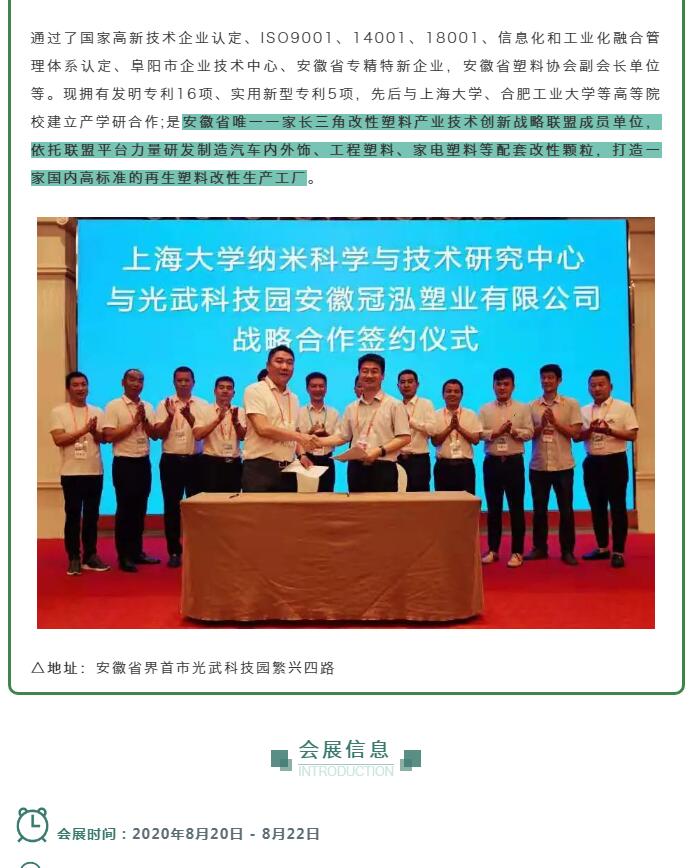 安徽冠泓塑业有限公司邀请您参加91再生·第五届再生塑料峰会!